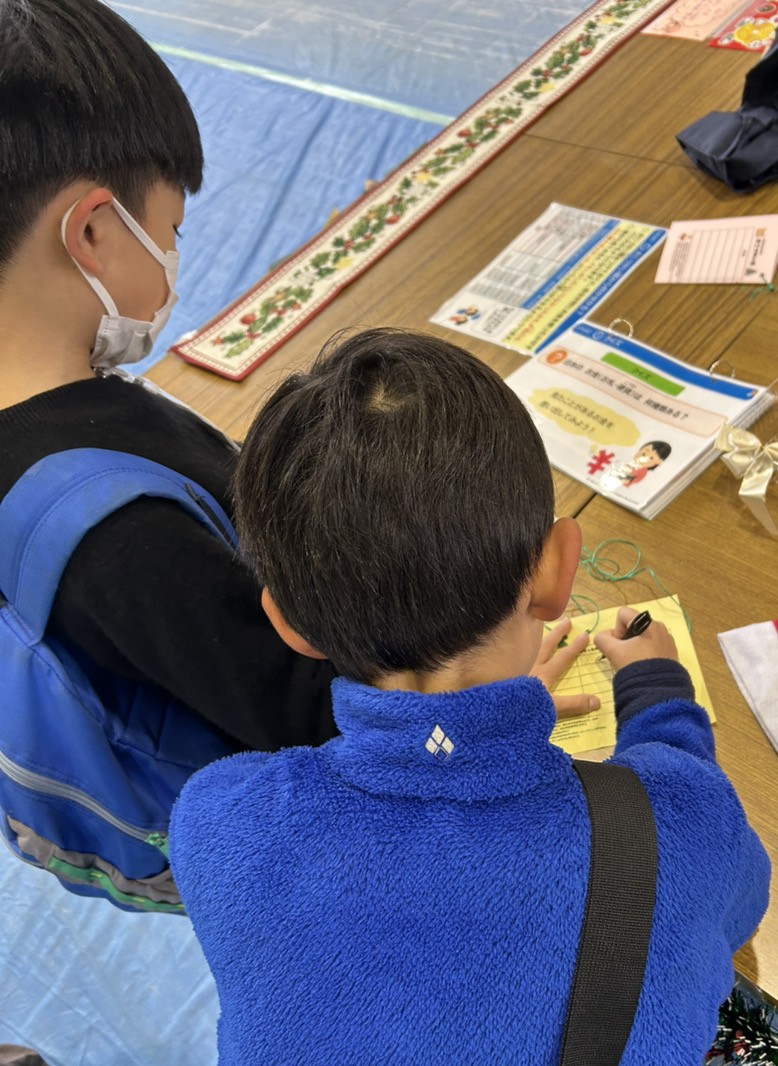 お祭りで使ったお金を書き留める「おこづかい帳」と「マネークイズ」のブースを出店。
